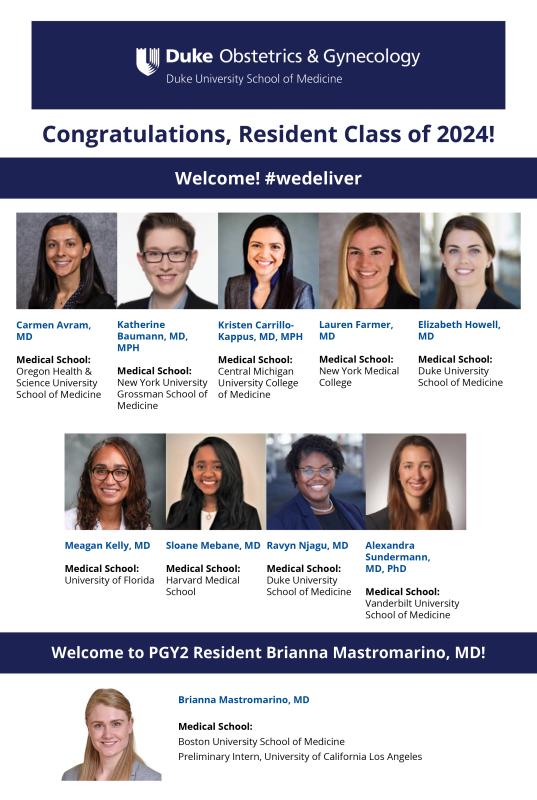 Duke Ob/Gyn welcomed a talented group of young physicians to train as the next leaders in the field on March 20, 2020 —