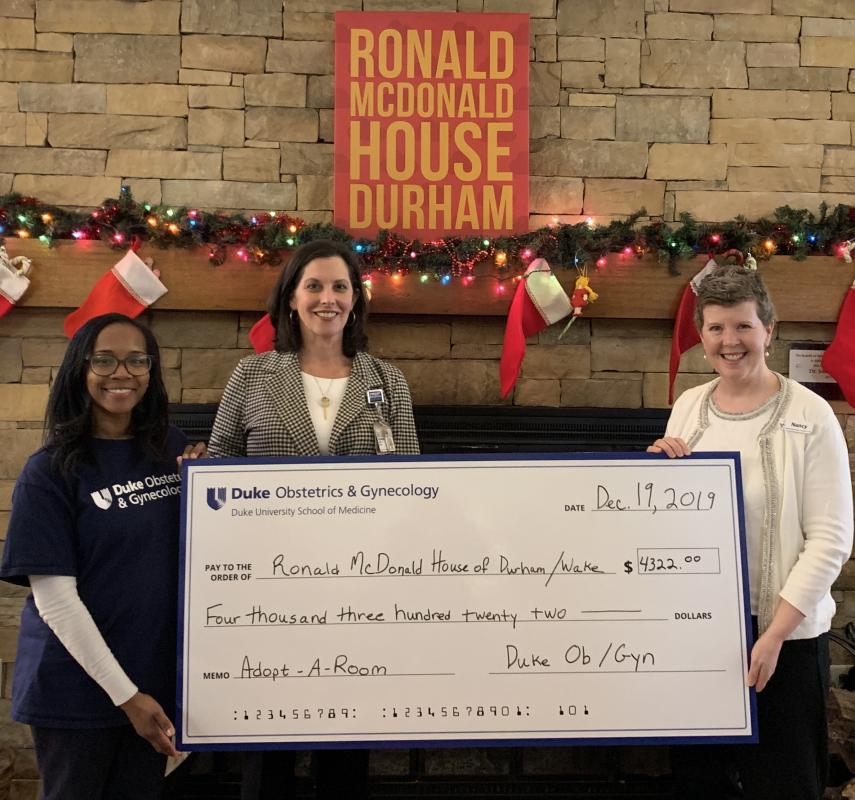 Duke Ob/Gyn's Adopt-A-Room fundraiser for Ronald McDonald House of Durham and Wake surpassed the Department's goal of $3,650 to cover the suggested $10/night donation from guest families.